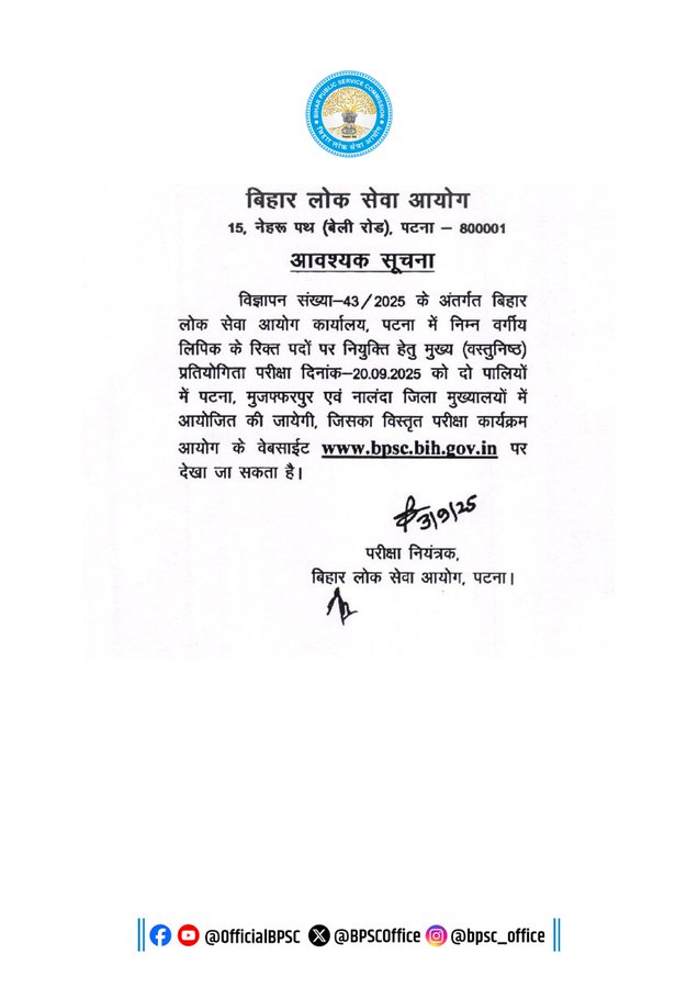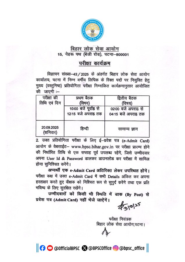 - Age Relaxation as per BPSC Lower Division Clerk LDC Recruitment Rules.