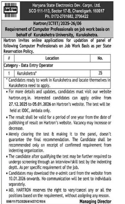 - For more complete information, please read the Haryana HARTRON DEO Notification 2026.