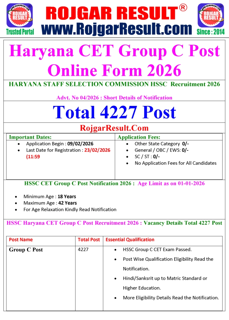 Common Eligibility Test (CET) Group C Post Online Form 2026