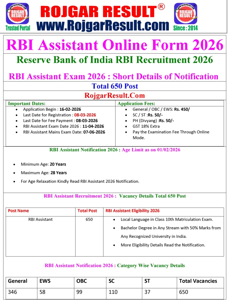 - For Age Relaxation Kindly Read RBI Assistant 2026 Notification.